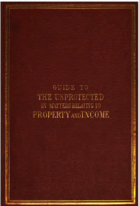 Is there a primary source that you inevitably reference in your work? When reading a new article or listening to a paper being presented do you anticipate the appearance of that familiar source? If the answer to these questions is yes, then you are not alone. My research interests focus on women who invested in financial securities during the late nineteenth and early twentieth century. I’m particularly interested in their experiences as female investors, and in who and what influenced their investment activities. Some of my research looks at the question of how women acquired financial knowledge, and that leads me to a familiar primary source. Historians with similar research interests have frequently made reference to a financial advice book published in 1863 entitled ‘Guide to the Unprotected in Matters Relating to Property and Income’. The book was printed in a handy A5 size and was bound in red leather with gilt lettering. Perhaps its popularity with modern day researchers owes something to the writer’s eminently quotable style, for example: ‘Seldom consult ladies in business matters: they usually know little or nothing of business. It is much like the blind leading the blind’.[1] At the time it was published financial advice books were relatively common. What made this one more unusual, and which makes it somewhat compelling for historians, was that the author was a woman and its target readership was female.
