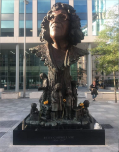 By 1960 Betty was part of the first female cohort of girls and the only black student in her Cardiff training college. In 1973 she became a dedicated head teacher at Butetown’s Mount Stuart Primary School. She lost no opportunity to promote a multi-racial society. Betty also became a Cardiff City Councillor, a member of the Race Relations Board and sat on the Commission for Racial Equality. An educational trip to the United States encouraged her to promote Black History Month here. She would have been delighted that the teaching of BAME History is about to become mandatory in the History curriculum in Wales. But less than a week after the unveiling of Betty’s statue, and during Black History month, a powerful mural in Butetown celebrating diversity was daubed with white paint, a reminder of how far we still have to go.