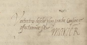 British Library Exhibition 8 October 2021 – 20 February 2022 Image: Signature of Mary in letter from Mary, Queen of Scots to Elizabeth I, 8 November 1582, British Library, Cotton MS Caligula C vii, f. 81v 1]…