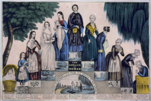 Image from wikimedia commons: https://commons.wikimedia.org/wiki/Category:Ageing#/media/File:11-stages-womanhood-1840s.jpg