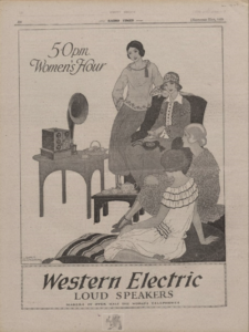 The talks were broadcast from the BBC’s first purpose-built studio at Savoy Hill, just off the Strand in London, where the organisation was based for its first ten years. It would have been quite a daunting process. Speakers would have waited outside the large curtain-draped space, clutching their scripts. When the time came to deliver their talk, they would then have stood before a large box-like structure – the microphone – where they would have been given a cue to start. It was then just a matter of continuing on until finished, hopeful that they hadn’t spoken too slow or too fast or made too many mistakes. In the absence of any recordings, it’s not possible to know what these talks would have sounded like, but reception on rudimentary wireless sets would have been very poor. It’s also impossible to know who would have been tuning-in to the programme in these very early days, but most probably they were the wives and mothers of radio enthusiasts who, evidence suggests, were overwhelmingly male.