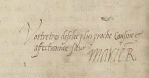 Image: Signature of Mary in letter from Mary, Queen of Scots to Elizabeth I, 8 November 1582, British Library, Cotton MS Caligula C vii, f. 81v 1]