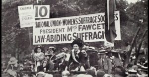 Millicent Garrett Fawcett addressing an estimated 50,000 women at a mass suffrage rally in Hyde Park on 26 July 1913; from LSE Library’s collections, 7JCC/O/01/177
