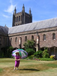 Image 2: The Cloisters at Hereford Cathedral, home to the Davises between 1911 – 1917, taken in summer 2018 when Three Choirs was taking place in Hereford and Clare was Chairman of the Festival celebrating the Representation of the People Act.