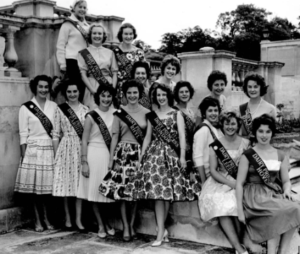 Fig 2. Dairy Princesses at Woburn Abbey, 1960. Celia is the second seated person on the right. Image courtesy of donor.