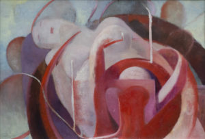 Not a party member, and apparently derogatory of Mussolini in private, the artist nevertheless created a body of Fascist-themed Futurist works for regime-sponsored exhibitions. Yet she was also the only female Futurist to explore female body politics in pictures that seem to subvert prevailing Fascist propaganda about happy families, prolific mothers, and submissive women. In Possession (1932-35) she pictured the violent embrace of a man and woman. In Futurist Maternity (1932) she created a dark and unhappy image of a mother and child chained together. In Sleeping Aviatrix (1932) a sleeping female nude is at the helm of a celestial body and her unprecedented image of childbirth in Physical Ecstasy of Maternity (1936) merges the earthly and celestial in what I take to be a dramatic and ironic ode to female (pro)creativity. Mori’s importance lies not in her position above, ahead, or beyond the culture of her time, but in the ways that she was inextricably bound to it, shaped by it, and often limited by it. As democracy and women’s rights face renewed opposition and backlash, her story holds lessons for us in our own time.
