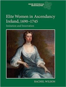 This book (published 17 Sept. 2015) examines the lives of elite women in Ascendancy Ireland by discussing their marriages, family lives and social, political and philanthropic activities. It is based upon extensive original research into many of the country’s leading families at this time and considerably advances the current historiography on Ireland’s female elite. It also contextualises its subjects’ experiences by placing them alongside those of English and Scottish women. Copies may be purchased online from the website of the publisher, Boydell and Brewer, as well as other major booksellers including Amazon. Please see http://www.boydellandbrewer.com/store/viewItem.asp?idProduct=14948