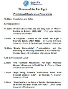 Women’s History Network West Midlands Conference, ‘Women of the Far Right’, Saturday 9 November, 10.30am–4.00pm at the University of Worcester, St. John’s Campus. Book your place now via Aurélie Papin a.papin@worc.ac.uk